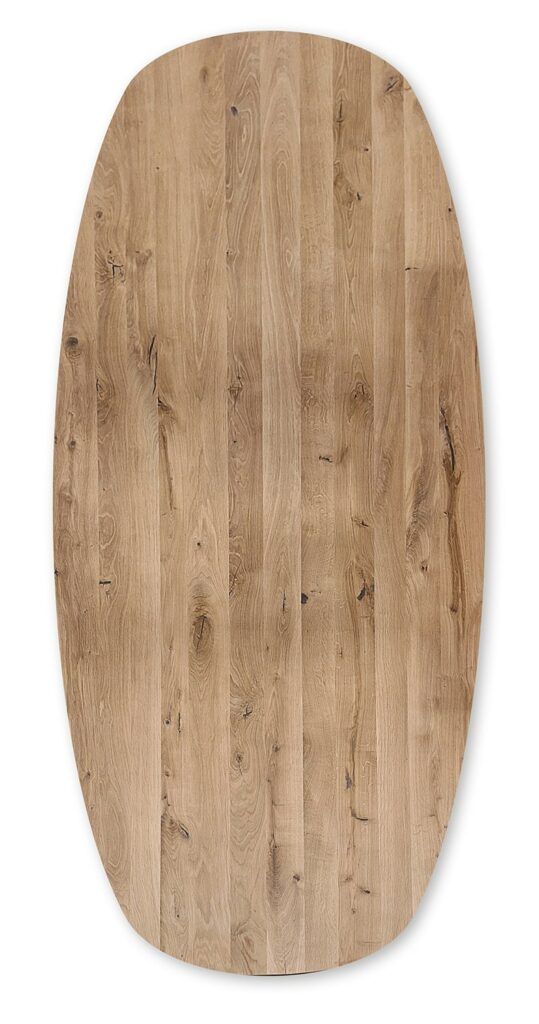 Voor wie kiest voor massief eikenhout komt deze vorm prachtig tot zijn recht. Eikenhout heeft van zichzelf al warmte en karakter, en juist in een Deens ovale vorm komt dat op een rustige, stijlvolle manier naar voren. De tekening van het hout volgt de lijnen van het blad, waardoor een natuurlijk, harmonieus geheel ontstaat. Zo krijg je een tafel die zowel praktisch als verfijnd is — én een echte sfeermaker in huis.