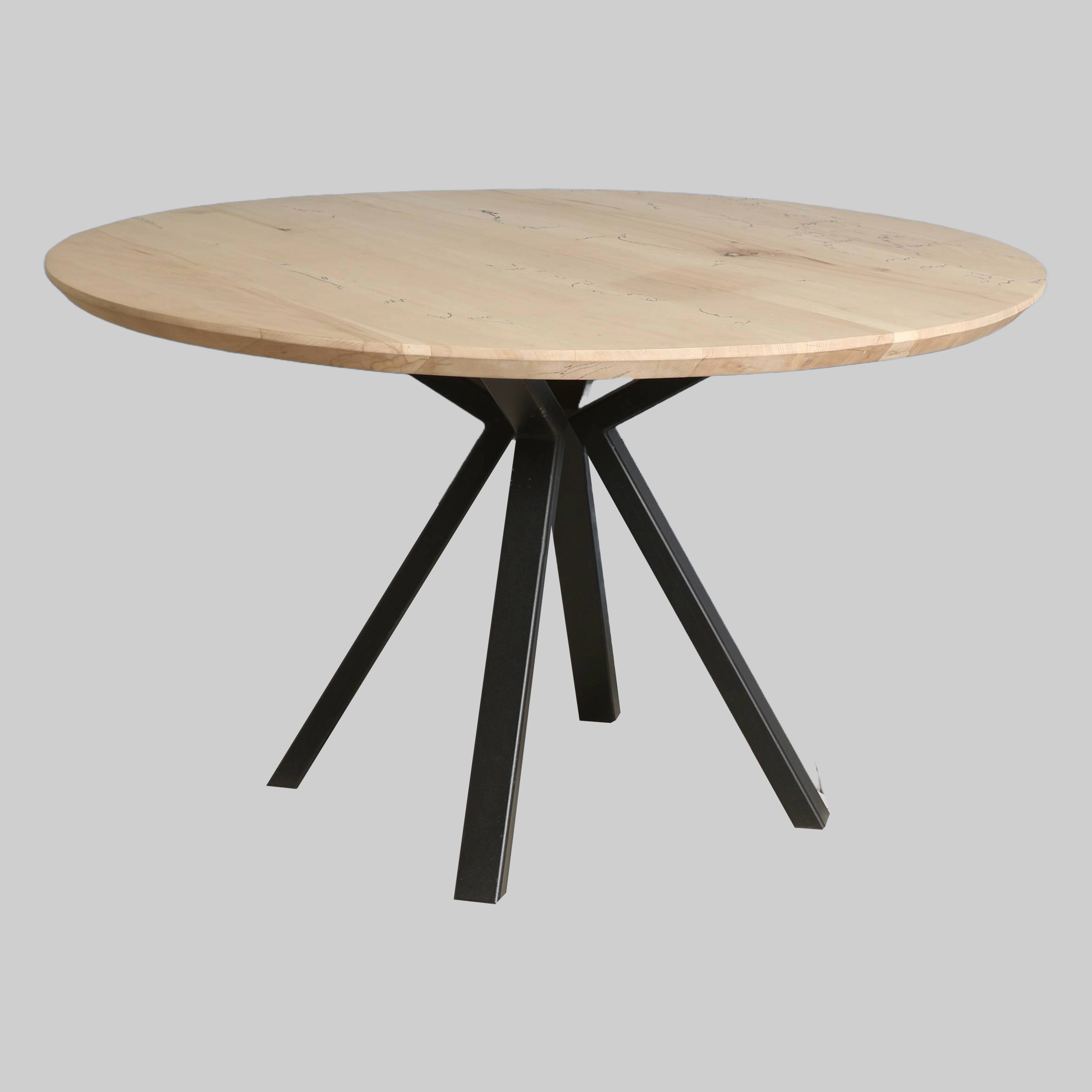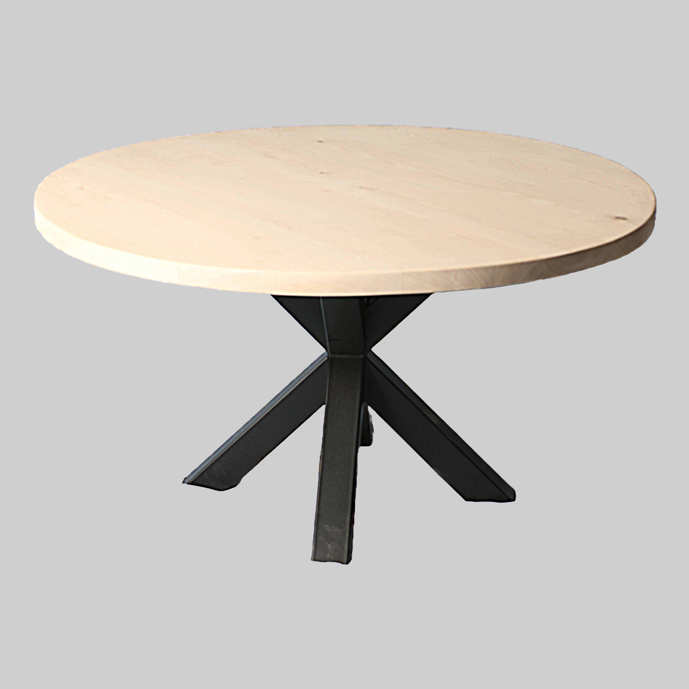 Elke ronde tafel wordt met zorg samengesteld op basis van jouw wensen. Je kunt kiezen uit verschillende soorten hout, zoals eiken, noten of iepen — elk met een eigen kleur, structuur en uitstraling. Ook het onderstel stel je zelf samen: van een rank metalen frame tot een robuuste houten poot in het midden. De afwerking en kleur zijn volledig naar smaak te bepalen, met opties zoals naturel, gerookt of zwart. Naast eettafels maken we ook ronde salontafels en buitentafels, waarbij materiaalkeuze en afwerking worden afgestemd op het gebruik en de omgeving. De maatvoering passen we aan op jouw ruimte en wensen: compact voor een knusse zithoek, royaal voor lange avonden buiten of binnen. Zo ontstaat een tafel die niet alleen past bij je interieur, maar ook bij je manier van leven.