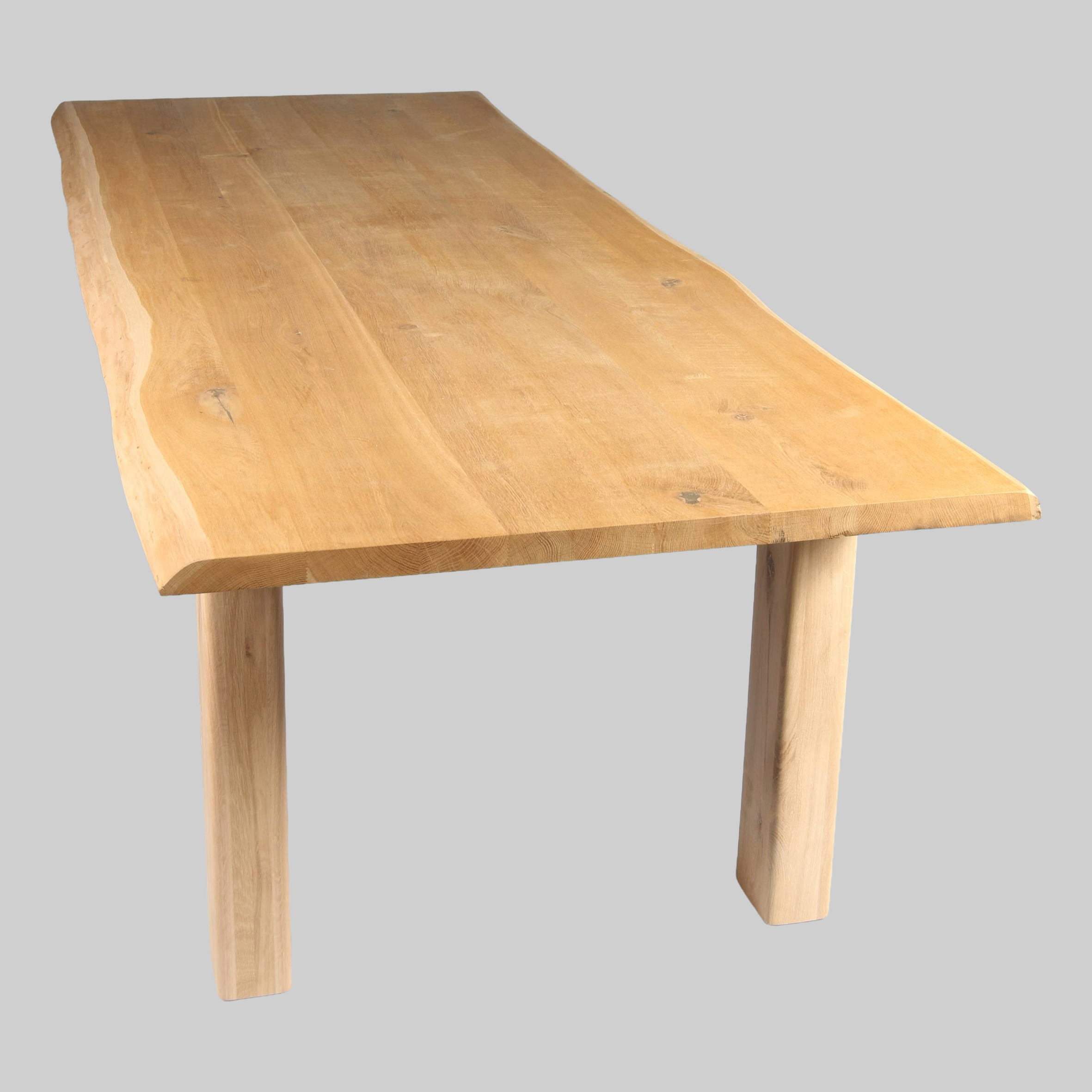 Deze boomstamtafel van jong eiken combineert natuurlijke charme met een stoere uitstraling. Het 4 cm dikke blad toont de authentieke boomkant, waardoor elke tafel uniek is. De warme kleur van het eikenhout zorgt voor een uitnodigende sfeer in elk interieur. Perfect voor wie houdt van vakmanschap, pure materialen en een tijdloze eetkamer met karakter.