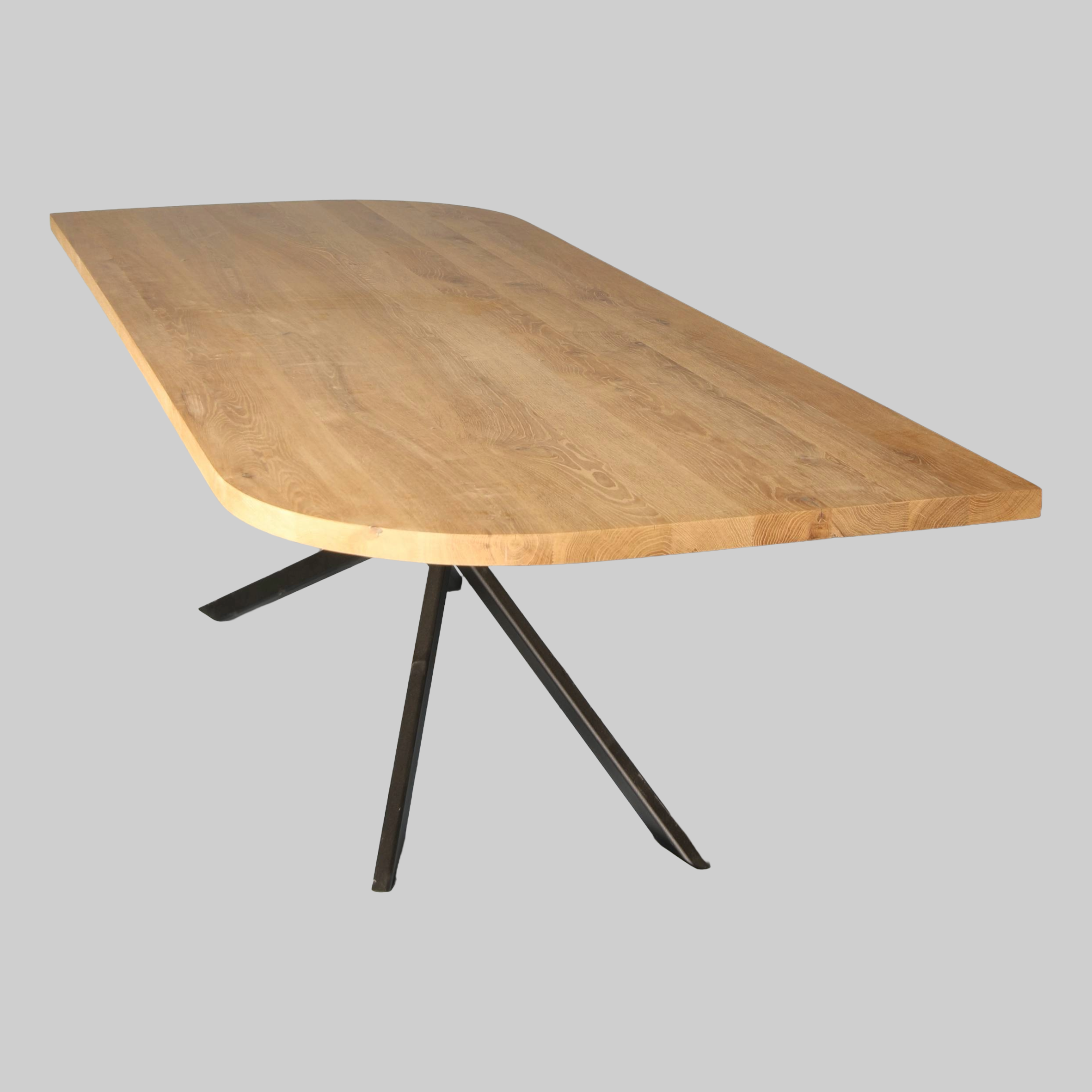 De eiken eettafel Swirl heeft twee afgeronde hoeken die zorgen voor een zachte, verfijnde uitstraling. Het 4 cm dikke blad van massief eikenhout toont een prachtige, natuurlijke nerftekening en brengt warmte in elke eetkamer. Dankzij het subtiele ontwerp combineert deze tafel moeiteloos met zowel moderne als klassieke interieurs.