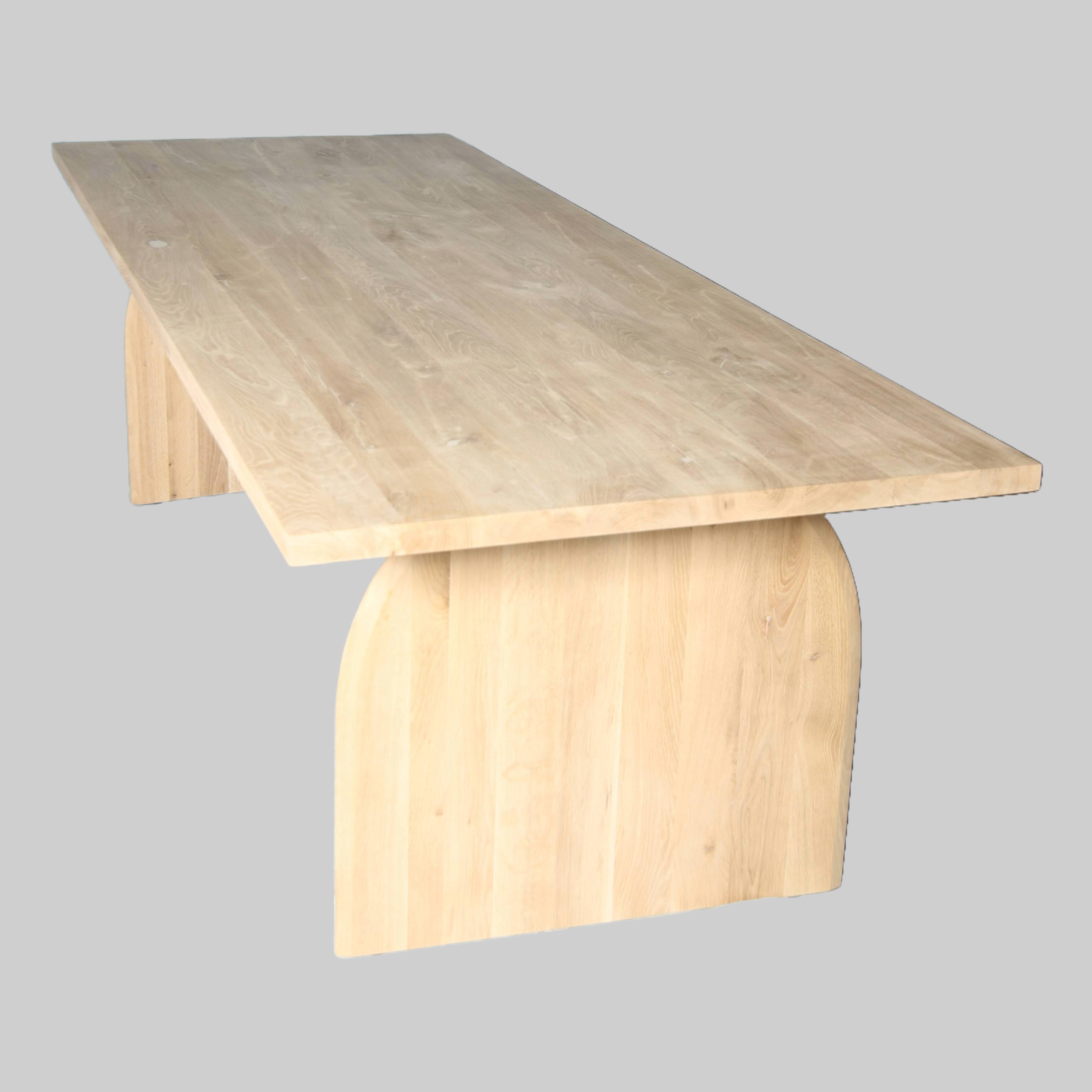 Deze eiken eettafel van jong eiken straalt ambacht en warmte uit. Het 4 cm dikke blad met natuurlijke rand geeft elke tafel een uniek karakter. De subtiele nerftekening en lichte kleur zorgen voor een tijdloze, sfeervolle uitstraling in elk interieur. Perfect voor wie houdt van vakmanschap en pure materialen.