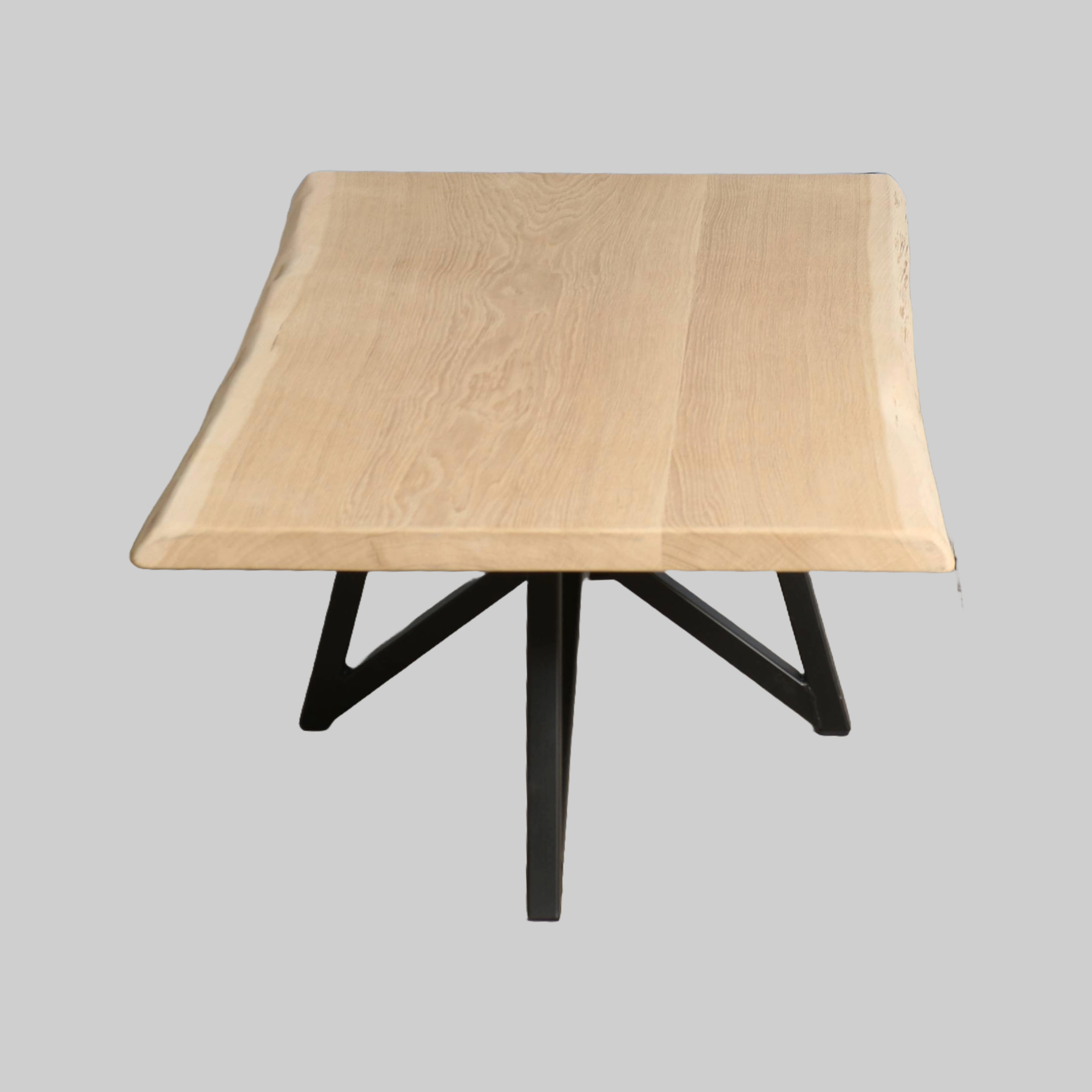Eikenhouten salontafel met een rustige en stijlvolle uitstraling. Het 4 cm dikke blad benadrukt de kwaliteit en stabiliteit van het hout. Een duurzaam meubel dat warmte en elegantie toevoegt aan elk interieur.