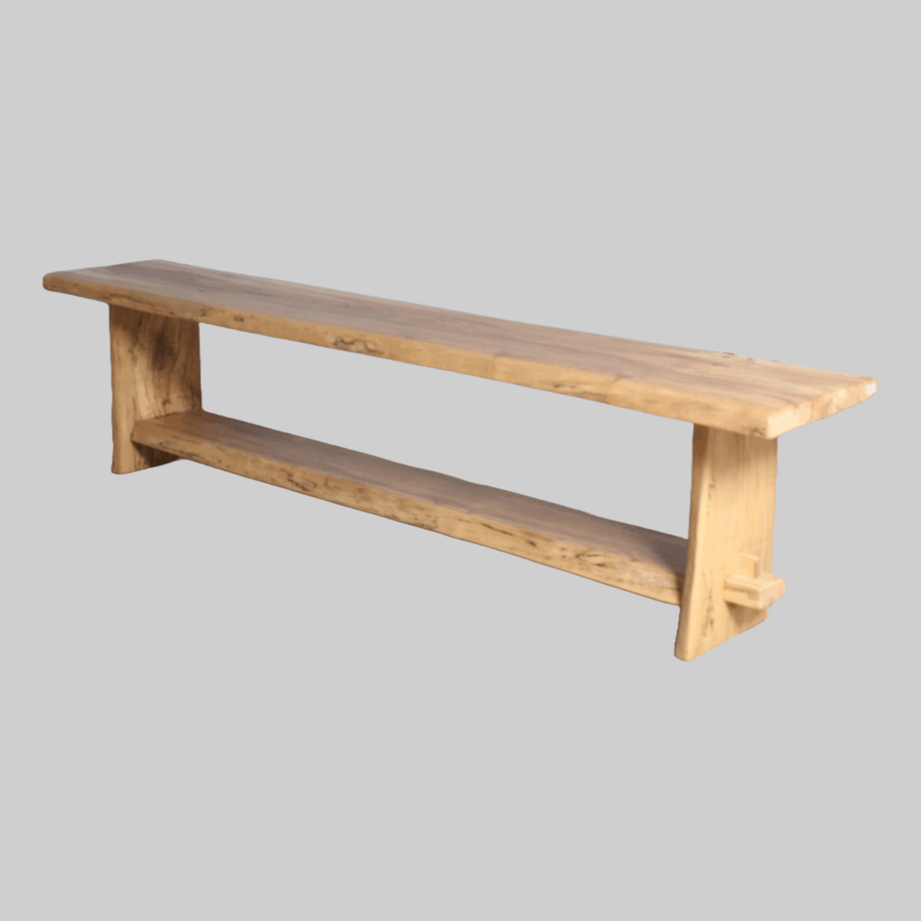 Een robuuste beukenhouten sidetable met een strak design. Het dikke blad van 6 cm en de natuurlijke afwerking zorgen voor een solide, tijdloze uitstraling. Perfect achter een bank of tegen een muur als decoratief en functioneel element.
